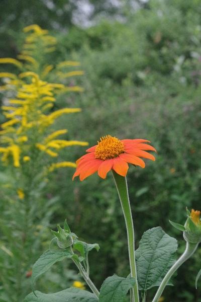 One of my favorite flowers to plant in mid-June for fall color is Amaranthus ‘Hot Biscuits’. When transplanted into the garden in early July (usually in a spot where an early spring crop such as lettuce or spinach grew), it shoots up quickly, eventually reaching 6 feet or more in fall. The dramatic plumes of orange flowers are the ideal eye-catching plant for September and October.