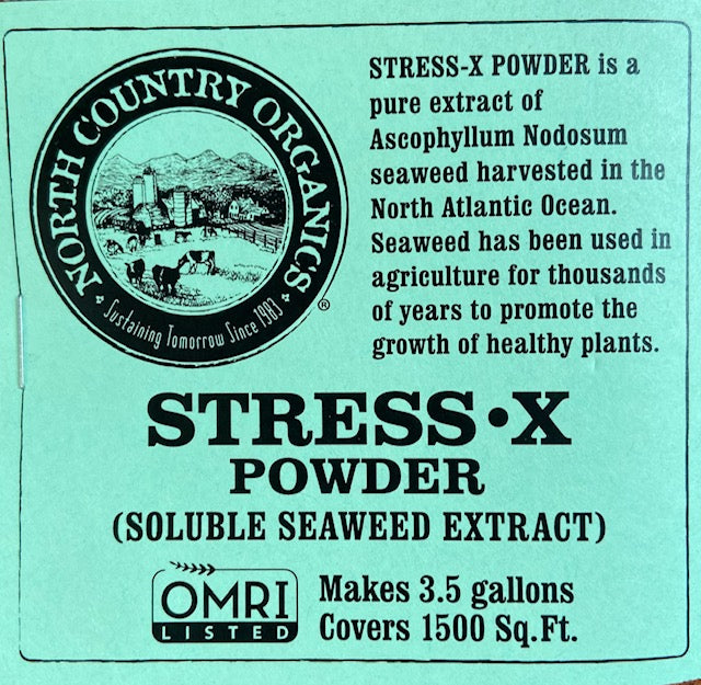 Stress X is a soluble seaweed extract from North Country Organics. Each packet makes up to 3 and a 1/2 gallons of product!